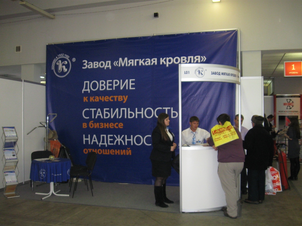 На открытие выставки стенд завода «Мягкая кровля» осмотрел министр строительства Самарской области П. К. Донской.
