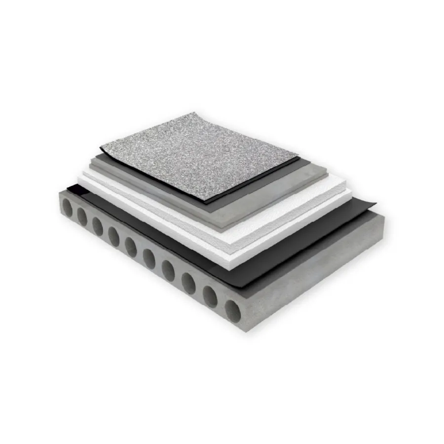 Утепленная неэксплуатируемая кровля по железобетонному основанию с применением уклонообразующего слоя МК-КЛИН и сборной стяжкой. Применение МК-КЛИН позволяет уменьшить нагрузку на несущие конструкции и сократить сроки проведения работ.