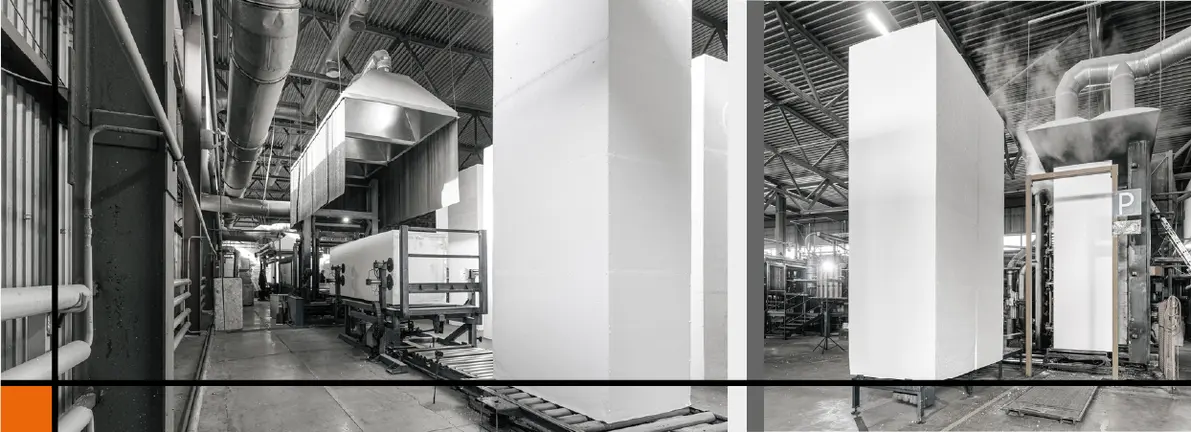 С помощью высокопроизводительного формовочного оборудования налажено производство различных изделий из пенополистирола, включая защитную пенополистирольную упаковку, термоконтейнеры, несъемную опалубку и формованные теплоизоляционные плиты.